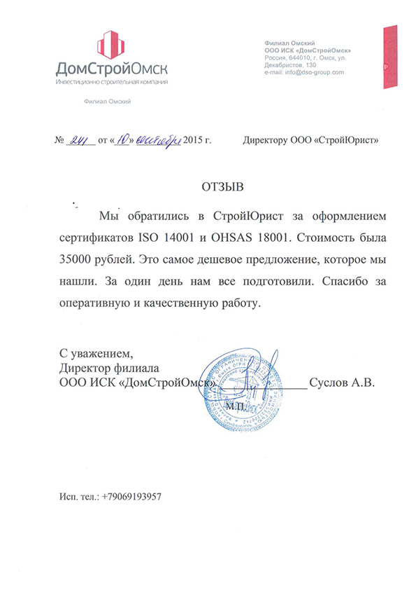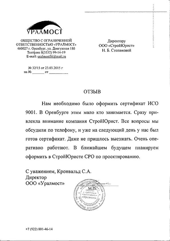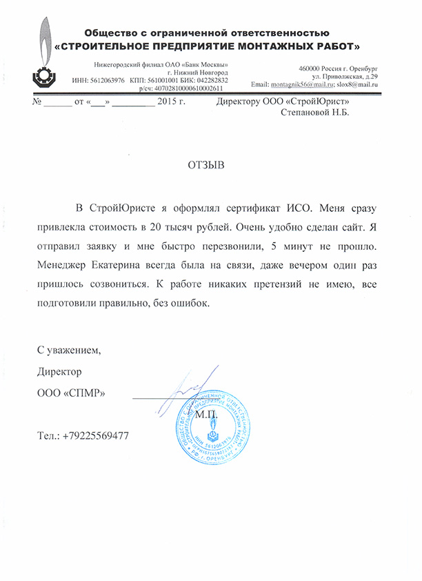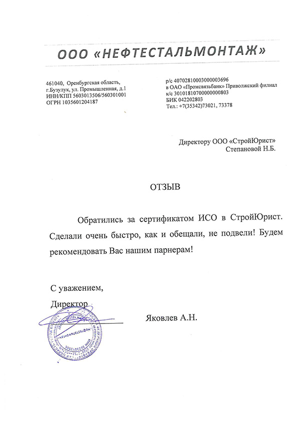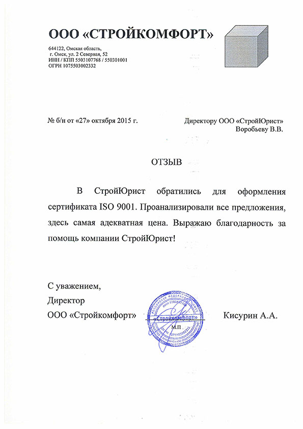 Отзывы клиентов "СтройЮрист" по ISO в Нижнем Тагиле
