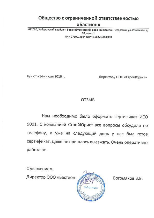 Отзывы клиентов "СтройЮрист" по ISO в Нижнем Тагиле