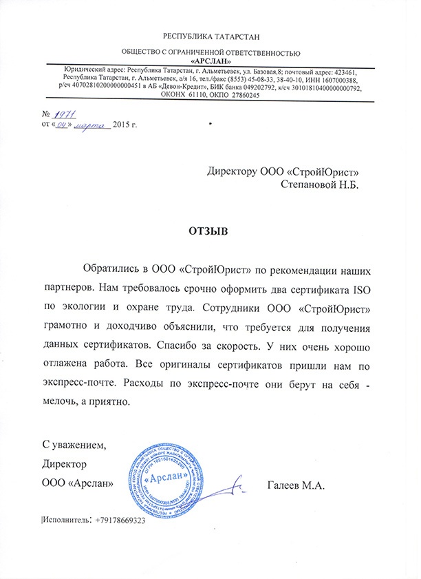 Отзывы клиентов "СтройЮрист" по ISO в Нижнем Тагиле