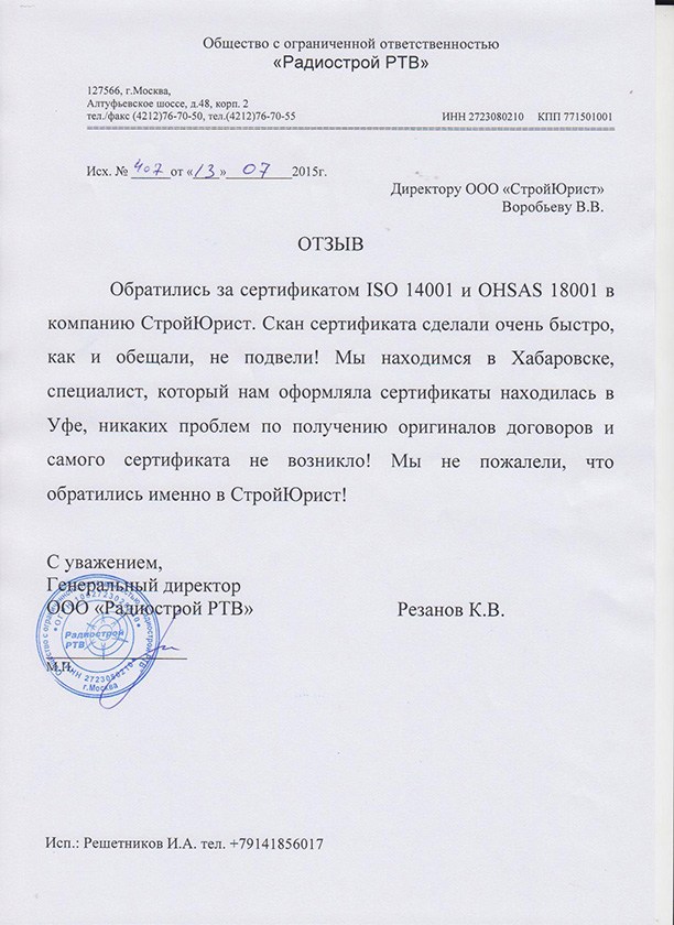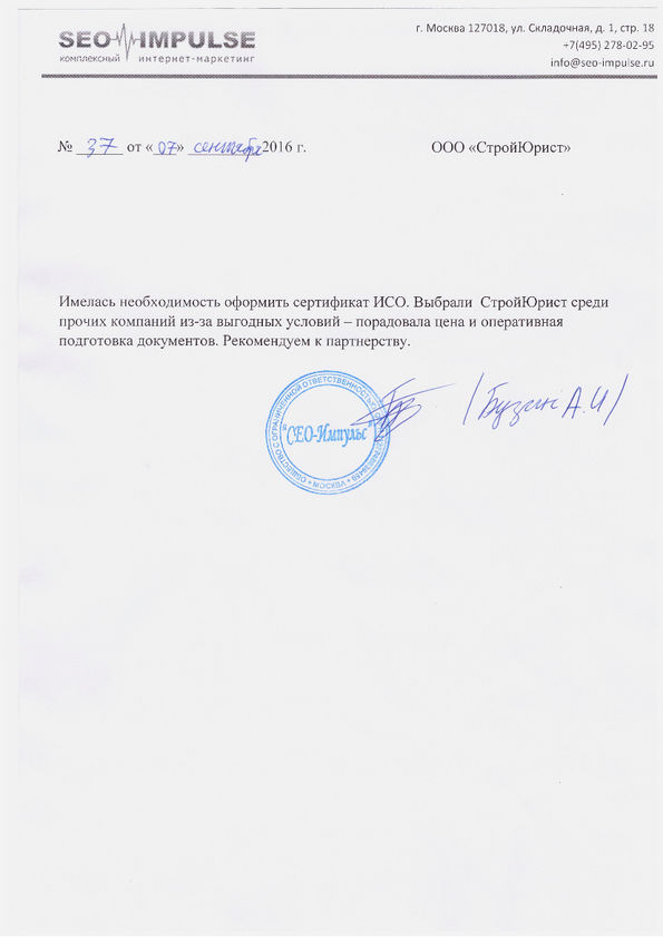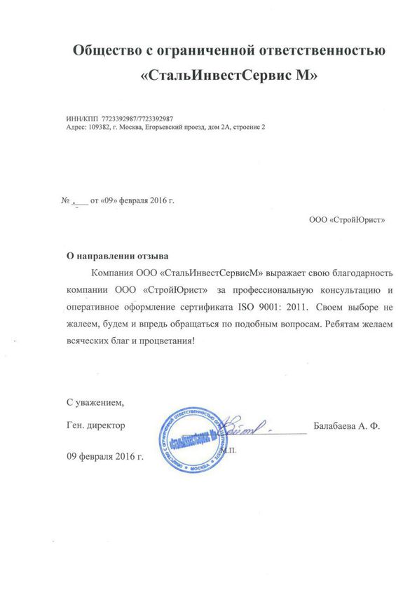 Отзывы клиентов "СтройЮрист" по ISO в Нижнем Тагиле