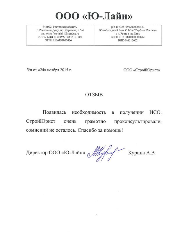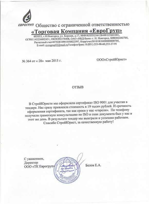 Отзывы клиентов "СтройЮрист" по ISO в Нижнем Тагиле