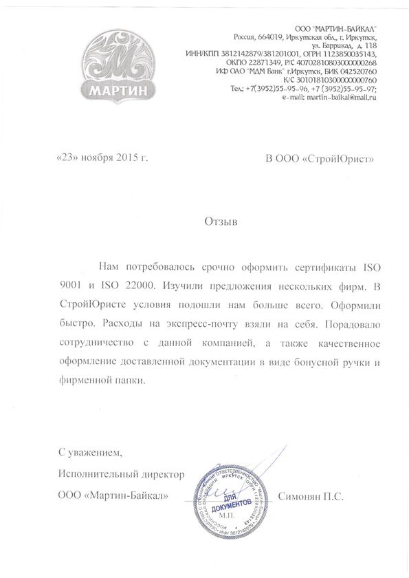 Отзывы клиентов "СтройЮрист" по ISO в Нижнем Тагиле