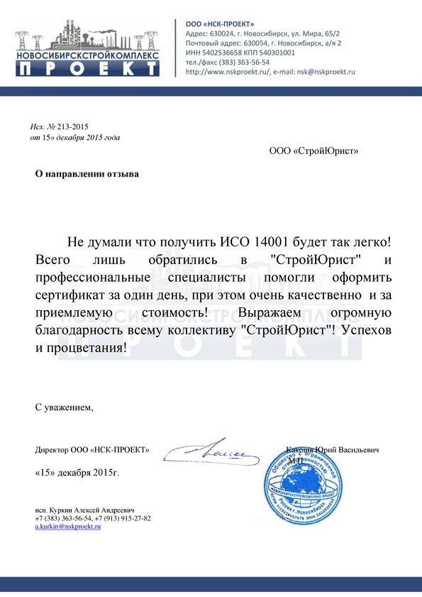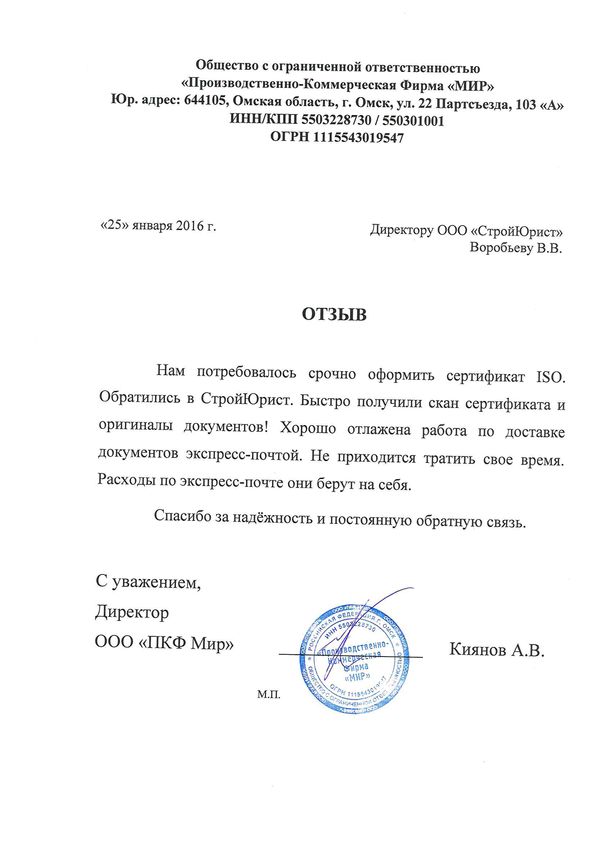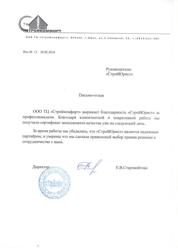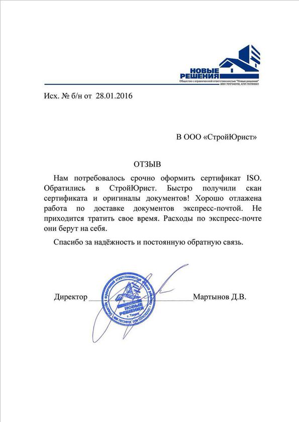 Отзывы клиентов "СтройЮрист" по ISO в Нижнем Тагиле