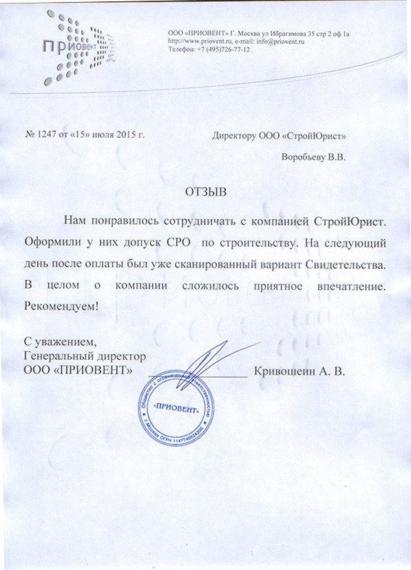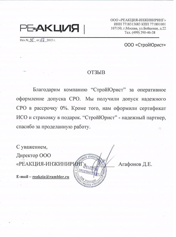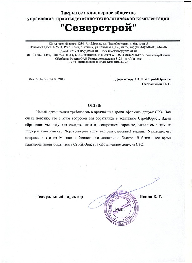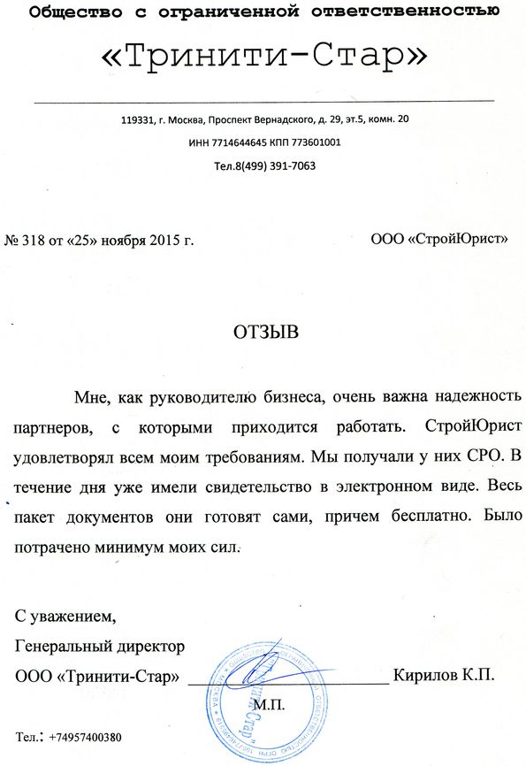 Отзывы клиентов "СтройЮрист" по вступлению в СРО в Нижнем Тагиле