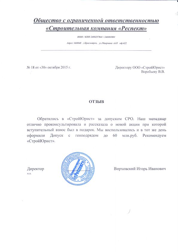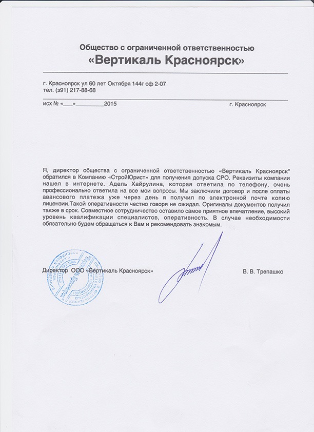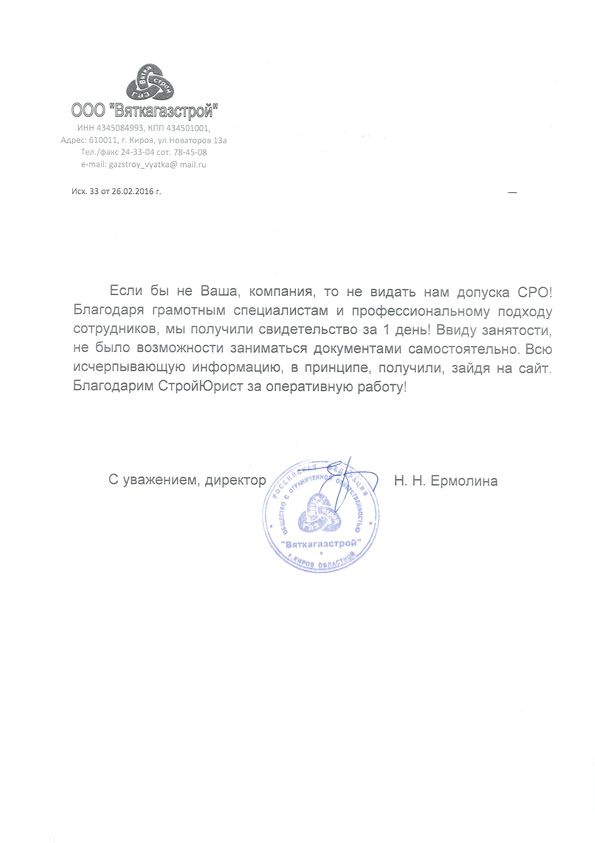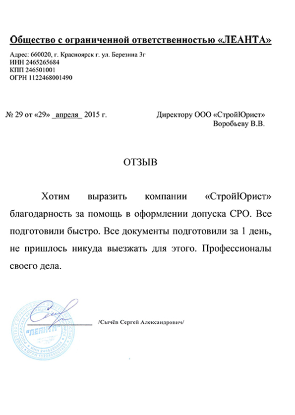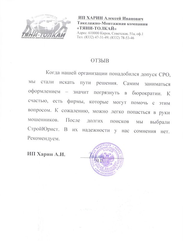 Отзывы клиентов "СтройЮрист" по вступлению в СРО в Нижнем Тагиле
