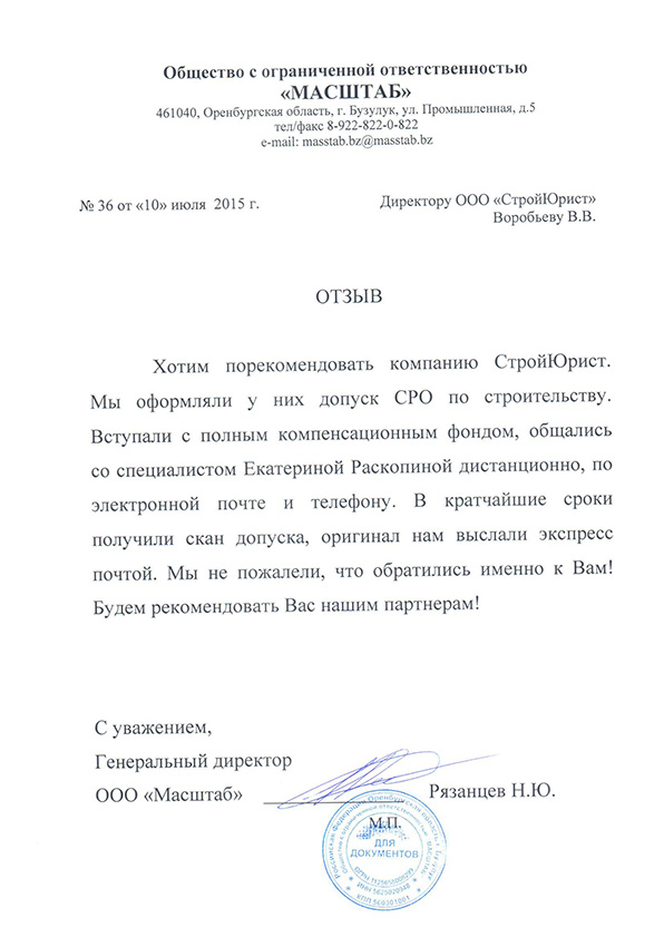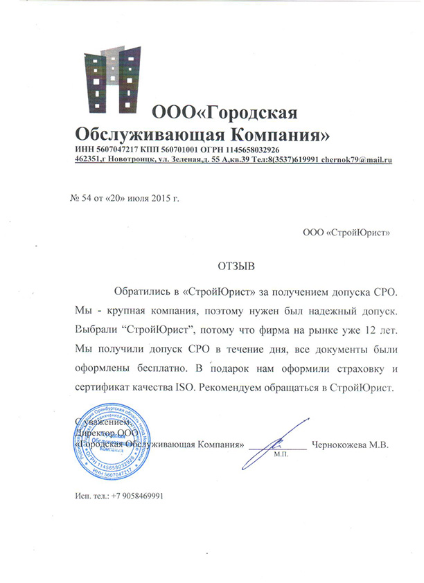 Отзывы клиентов "СтройЮрист" по вступлению в СРО в Нижнем Тагиле