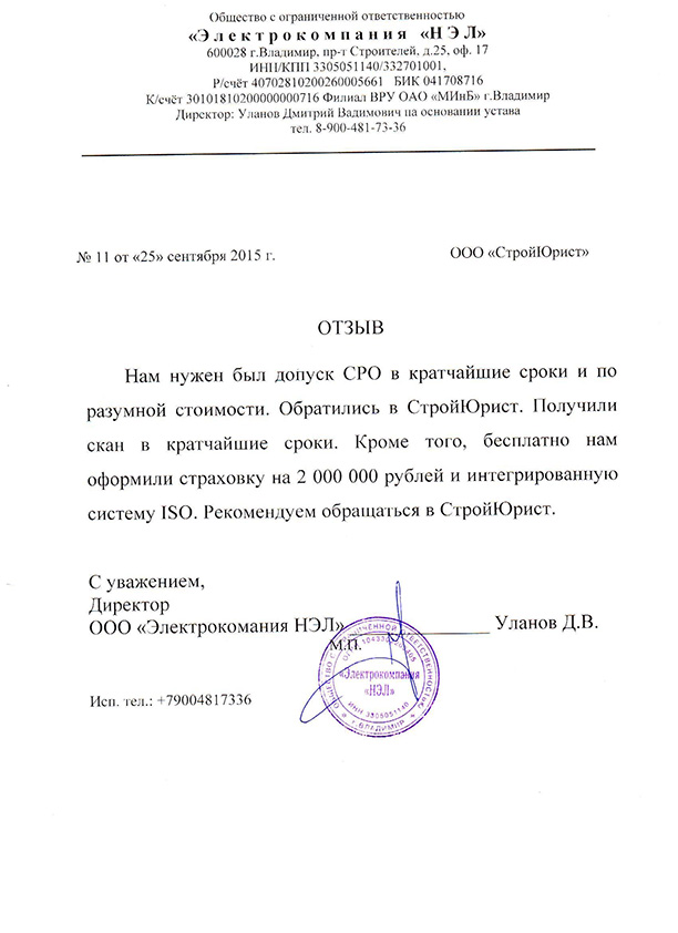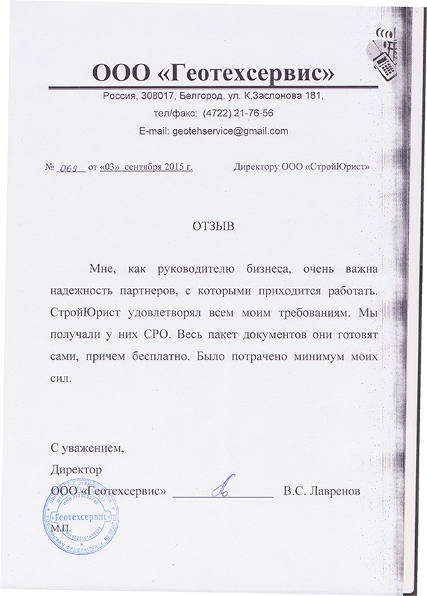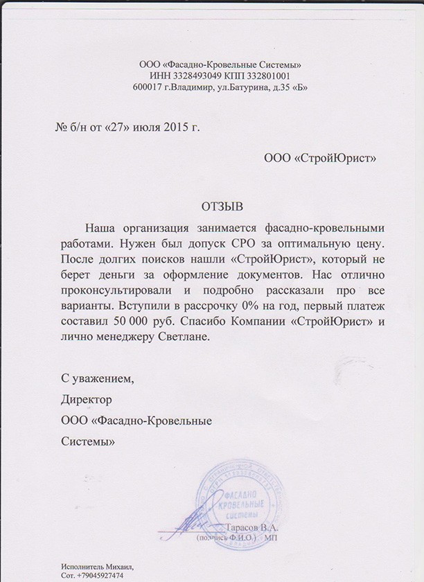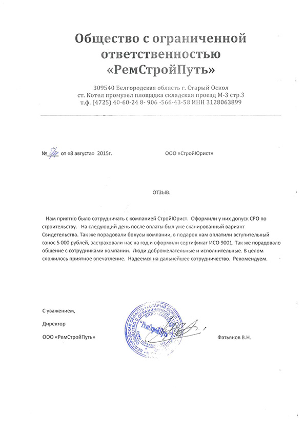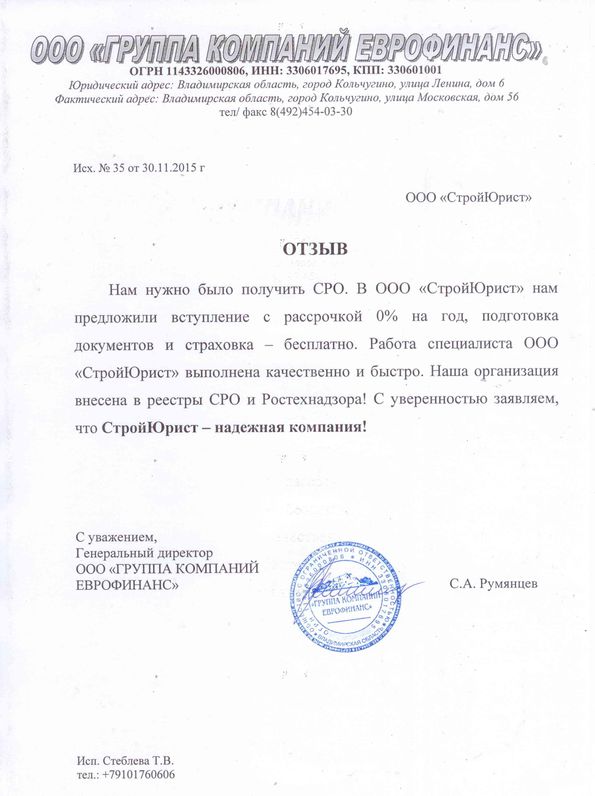 Отзывы клиентов "СтройЮрист" по вступлению в СРО в Нижнем Тагиле